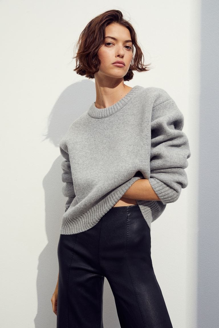 Starting with another Tibi mention, but I think this would look very cool over a simple black base layer. All I can think about right now is The Row Ophelia sweater, but all I can wear right now is this H&M sweater that has been such a good find. This H&M find has been the best The Row dupe I’ve come across.
